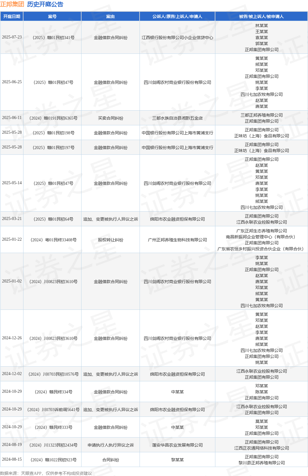 证券之星消息,根据天眼查APP显示,近日公布了一则正邦集团有限公司作为被告/被上诉人的开庭公告,详细内容如下: